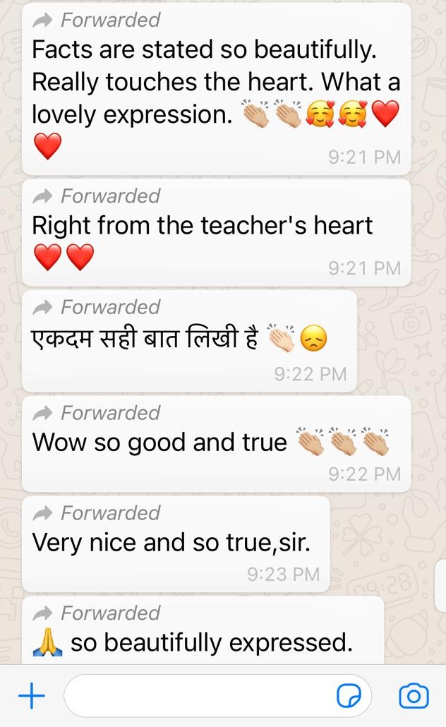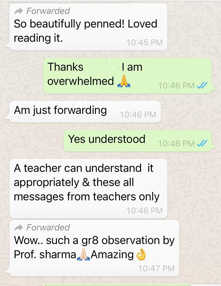 Some comments I received on this poem from readers on WhatsApp: